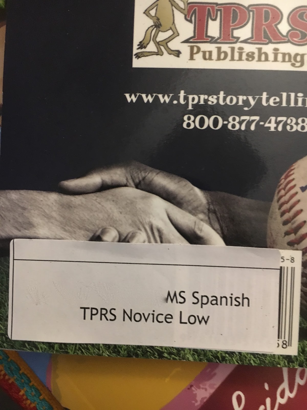 Each book is tagged with our school's name, a bin number, and if it is a specific TPRS novel, the level (according to Bryce Hedstrom's great resource for leveling novels, click above and scroll down).